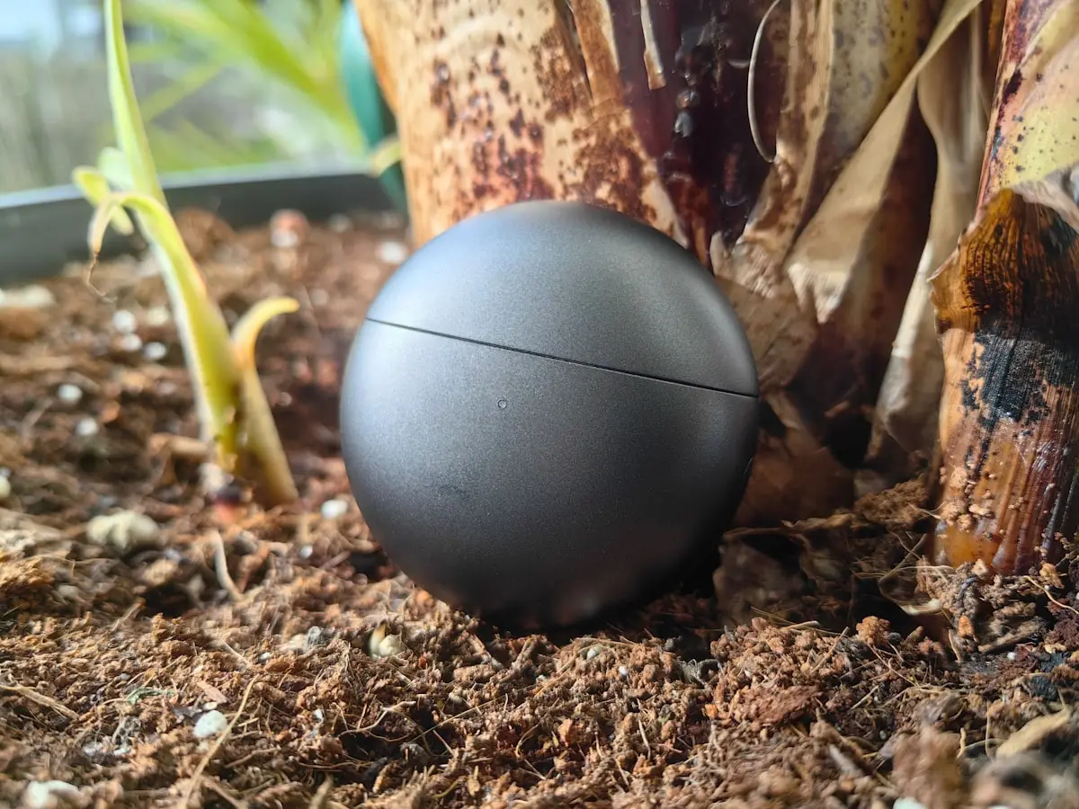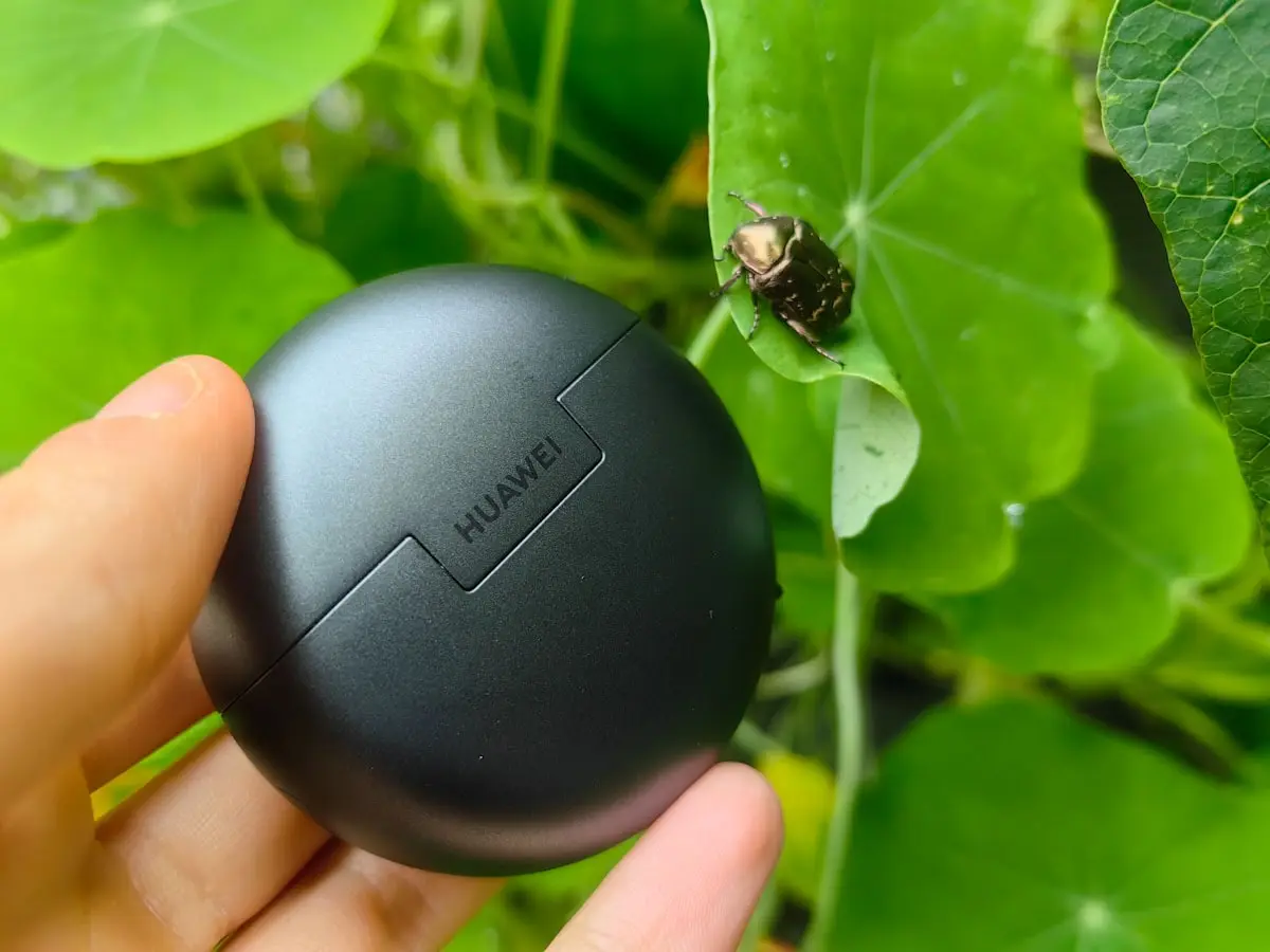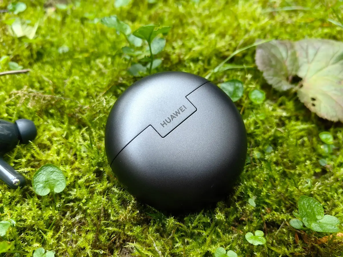 Die HUAWEI FreeBuds 7i kommen in einem runden Ladecase, das ohne die Ohrhörer 36,5 g wiegt. Die Ohrhörer selbst bringen jeweils 5,4 g auf die Waage und sind minimal breiter und dicker als beim Vorgänger. Das schwarze Modell ist matt und unempfindlich gegenüber Fingerabdrücken. Das obere Drittel des Cases lässt sich problemlos mit einer Hand öffnen und schließen, wirkt stabil und erzeugt ein sattes Geräusch beim Zuklappen. Allerdings nicht ganz so gut wie bei den FreeBuds Pro 4.