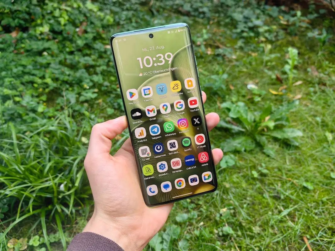 Das Display macht einen soliden Eindruck: Schärfe, Helligkeit und Farbdarstellung befinden sich auf einem hohen Niveau. Die Rückseite besteht aus Kunststoff, zeichnet sich jedoch durch eine besondere Textur aus. Sie fühlt sich leicht gummiartig an und sorgt durch ihre Struktur für einen sicheren Halt. Die auffällige grüne Farbvariante sticht optisch hervor, und die leicht nach oben gewölbte Form rund um die Kameras verleiht dem Gerät ein markantes Design.