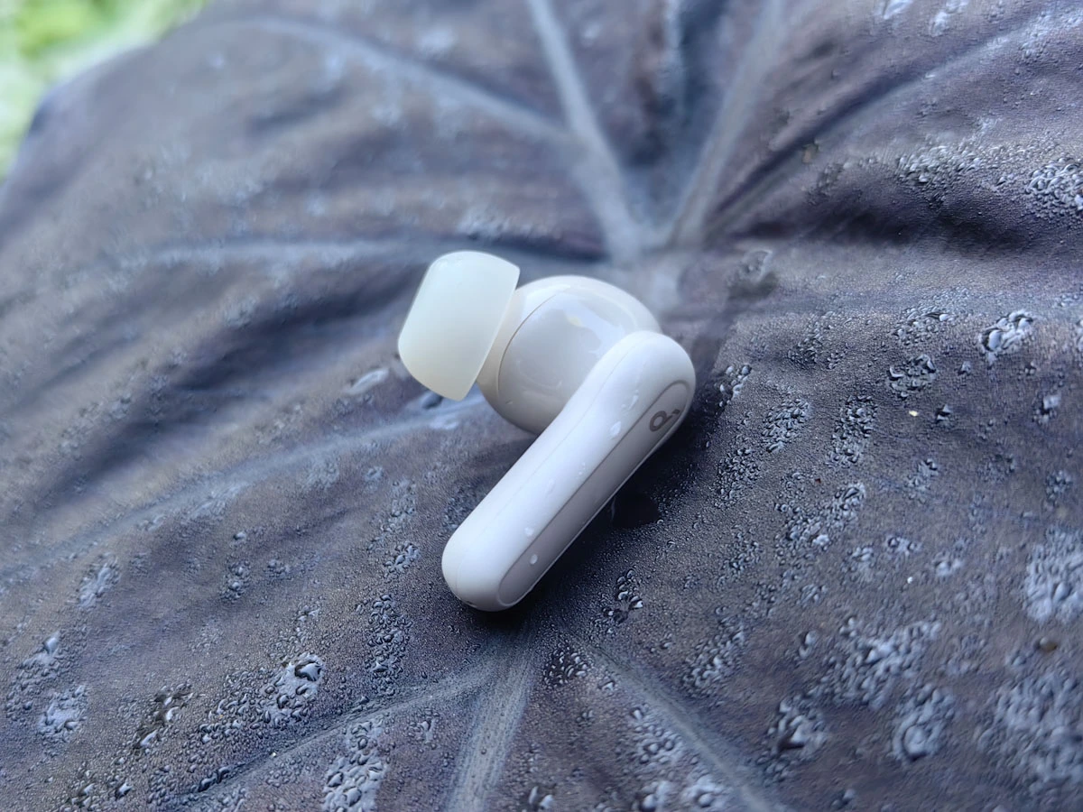 Bei den Soundcore Life P2 Mini handelt es sich um In-Ear-Kopfhörer, die direkt in den Gehörgang eingeführt werden. Damit die P2 Mini angenehm und sicher in den Ohren sitzen, sind ab Werk Silikon-Aufsätze in der Größe M angebracht. Falls diese zu groß oder zu klein sind, solltest Du die mitgelieferten Aufsätze in den Größen XS, S, L und XL probieren. Die Ohrhörer sind nach IPX5 gegen Spritzwasser geschützt. Regen und Schweiß sind also keine Probleme, aber Duschen oder gar Schwimmen solltest Du damit bitte nicht.