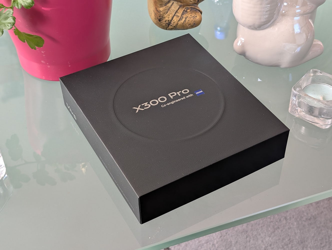 Die Verpackung des Vivo X300 Pro ist wie beim Vorgänger quadratisch, schmal und hochwertig gestaltet. Auf der Vorderseite stehen der Produktname und der Hinweis auf Zeiss.